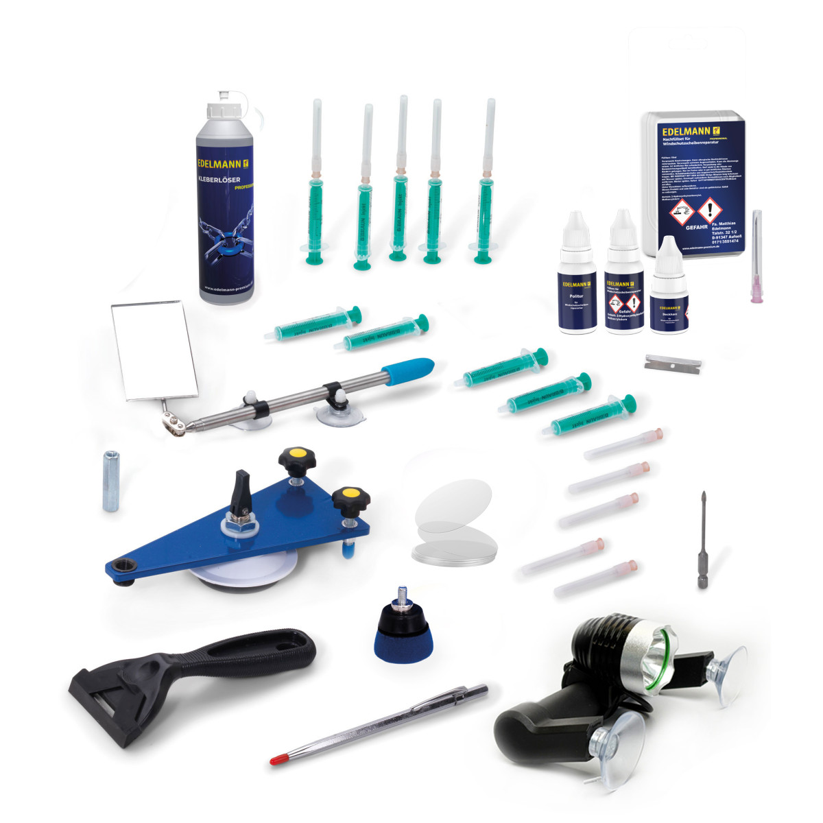 Professionelles Steinschlagreparaturset zur Verbundglasreparatur mit Injektoren